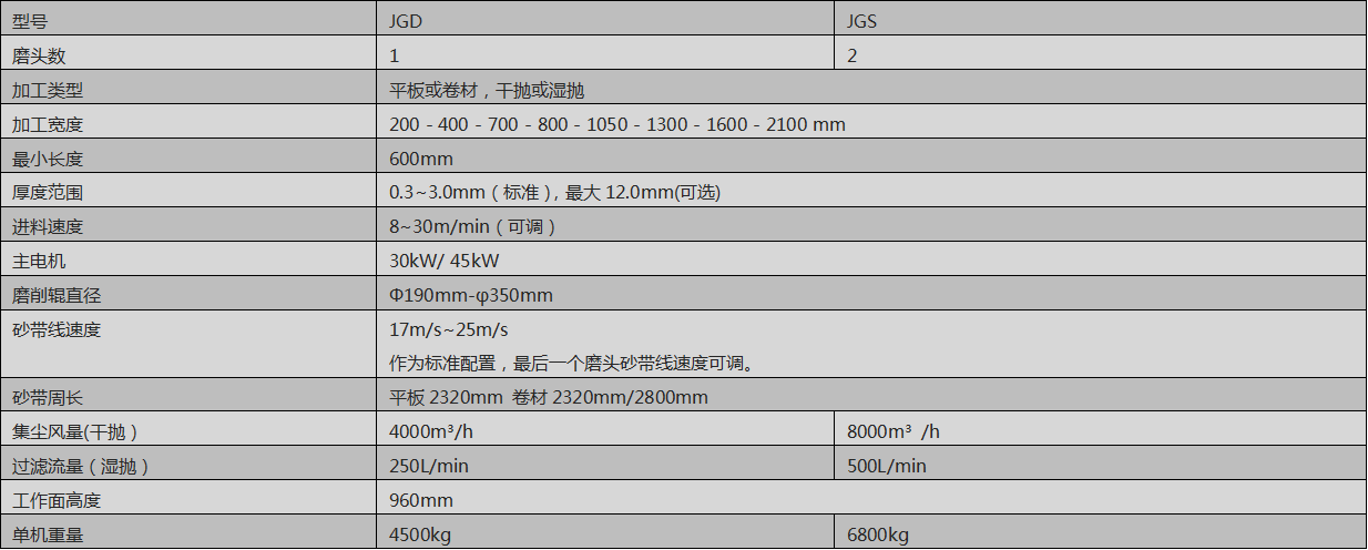 吉力佳1995年開發的JGD短絲系列提供對金屬卷材或平板的磨砂服務,具有干拋或油拋兩種功能。該設備擁有高精度和高轉速底置磨削磨頭,即使在高速生產時亦可獲得穩定完美的處理面。具有生產率高、配置靈活、運行維護成本低的特點。